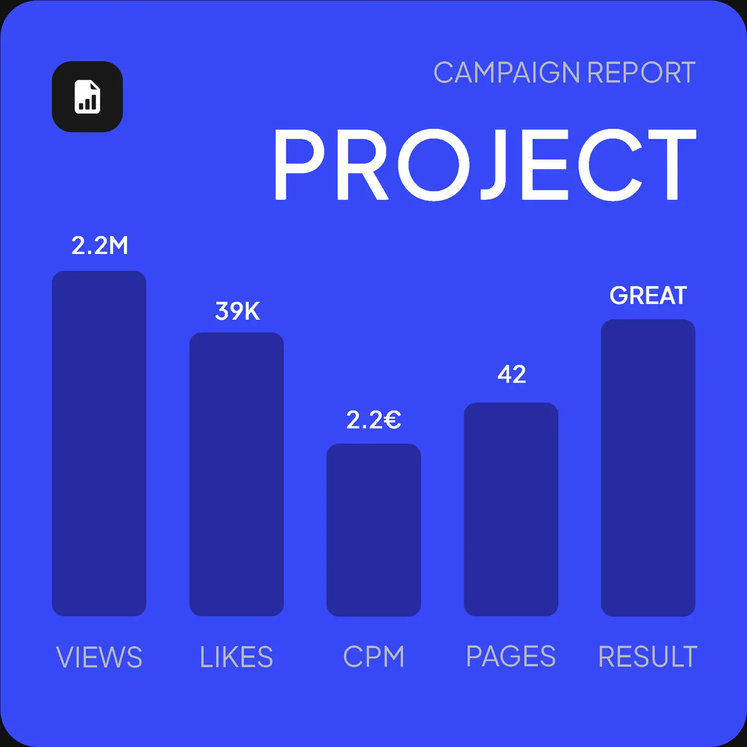 See the impact in real-time with full transparency. Track impressions, views, and influencer engagement through detailed reports and in-depth performance breakdowns.
