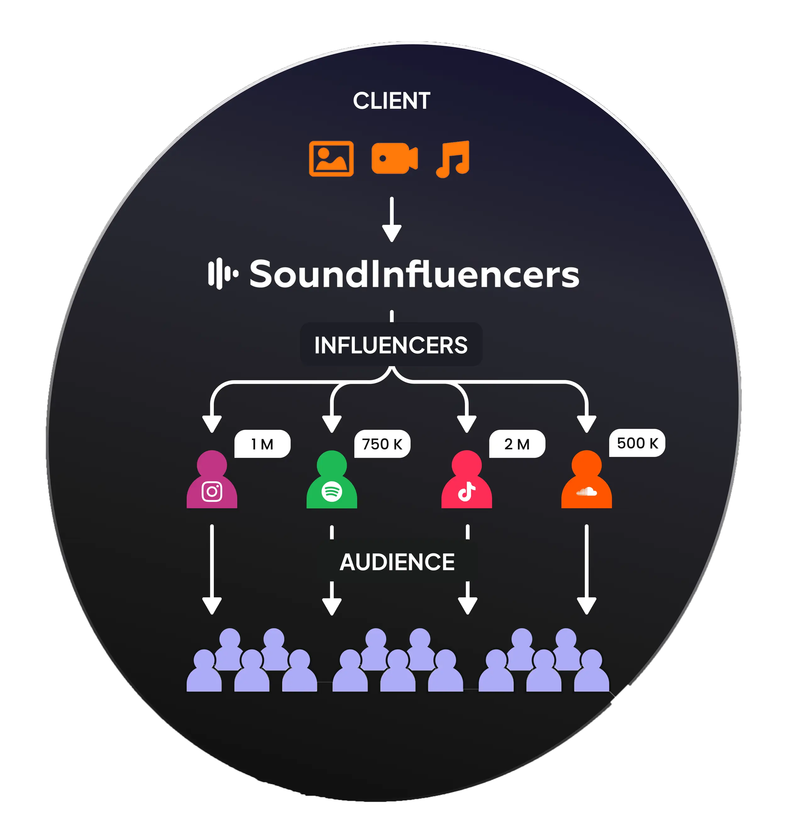 Get your music or event seen. We connect artists, labels, and promoters with 252+ influencers to drive engagement on TikTok, Instagram, YouTube, Facebook, and more.
